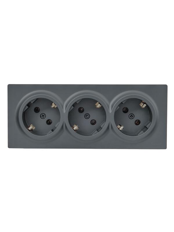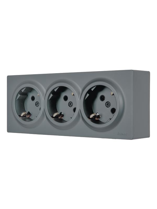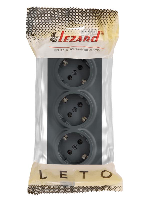 752-3400-127BUP | Розетка 3-м ОП LETO с заземл. закрытый корпус ПБТ графит LEZARD
