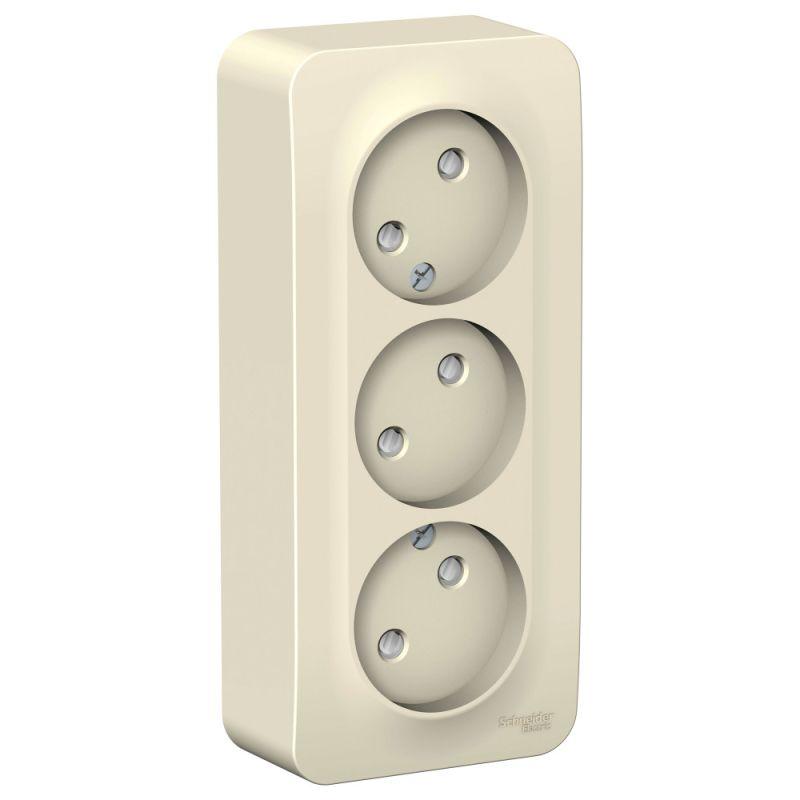 Розетка 3-м ОП Blanca 16А IP20 250В без заземл. защ. шторки с изолир. пластиной молоч. SE BLNRA001312