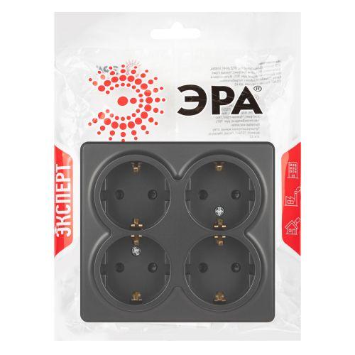 Б0063004 | Розетка 4-м ОП Эксперт 11-2211-05 16А IP20 250В 4х2P+E Schuko с заземл. защ. шторки антрацит Эра
