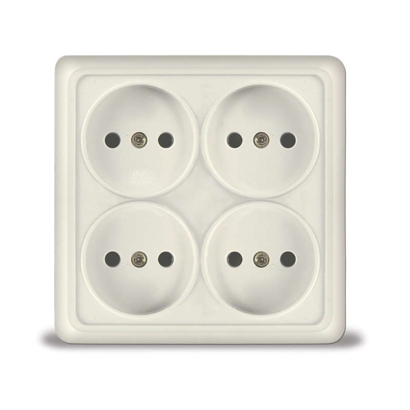Розетка 4-м ОП Олимп 16А IP20 квадрат. без заземл. сл. кость UNIVersal 1170