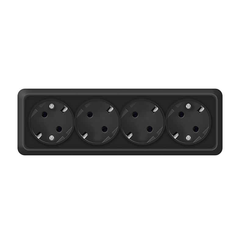 2221 | Розетка 4-м ОП Олимп 16А IP20 с заземл. черн. Universal
