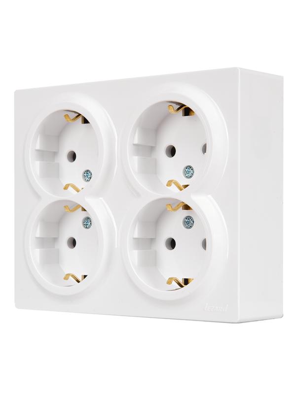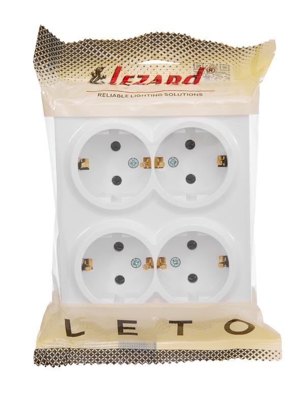 752-0200-127BDP | Розетка 4-м ОП LETO с заземл. закрытый корпус ПБТ бел. LEZARD