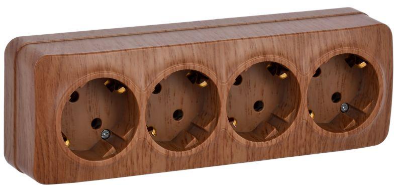ERH41-K24-16 | Розетка 4-м ОП GLORY РС24-3-ХД 16А с заземл. дуб IEK