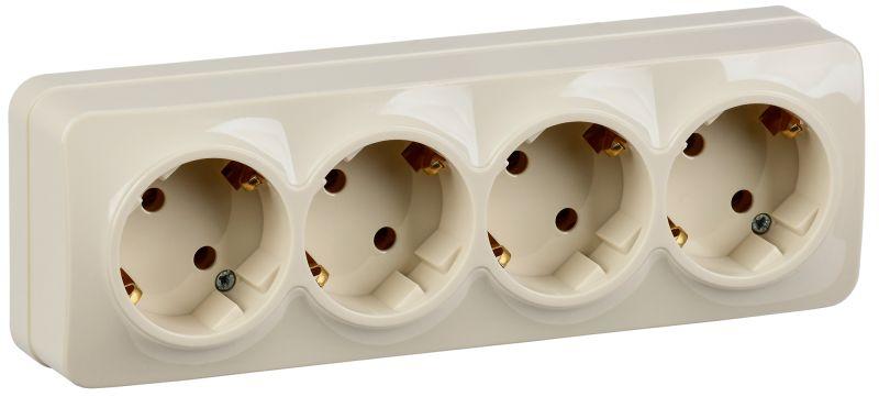 ERH41-K33-16 | Розетка 4-м ОП GLORY РС24-3-ХК 16А с заземл. крем. IEK