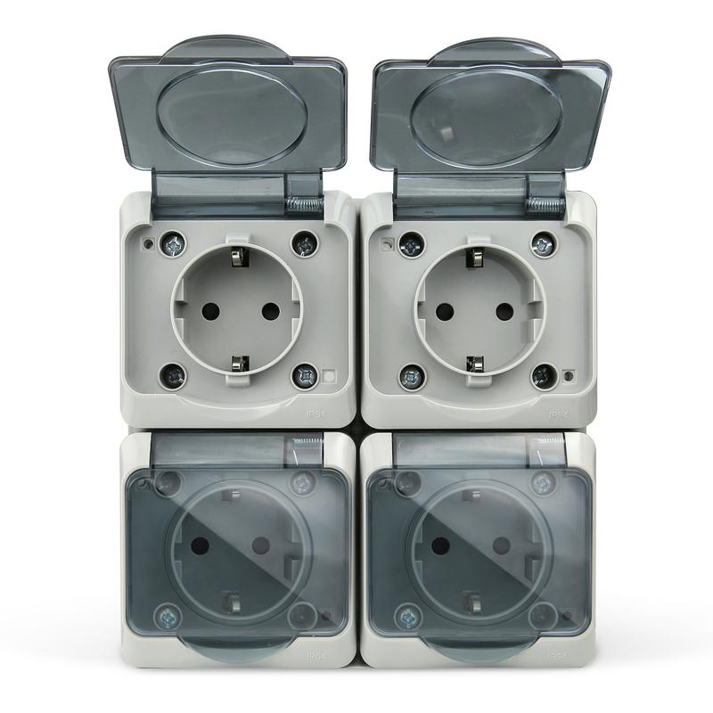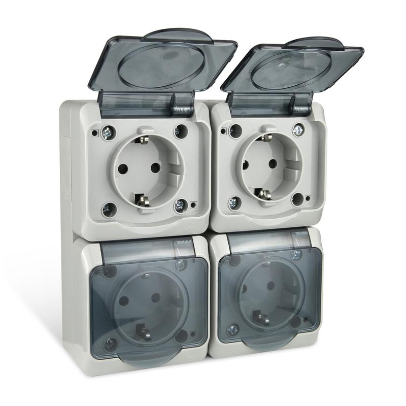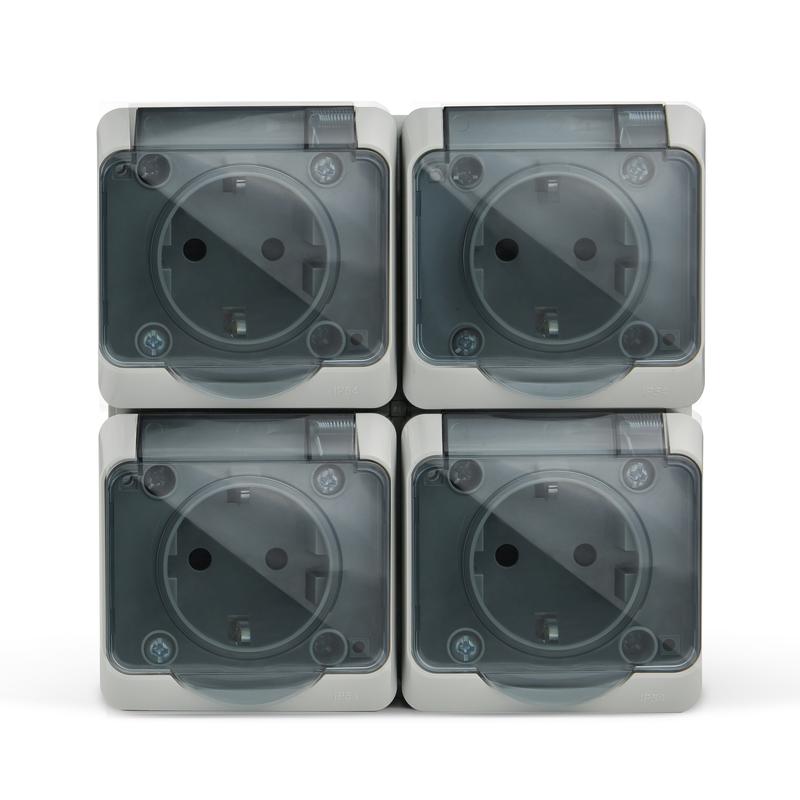 TKE-NX-R4Z-C06T-IP54 | Розетка 4-м ОП Nix 16А IP54 250В с заземл. с прозр. крышкой сер. TOKOV ELECTRIC