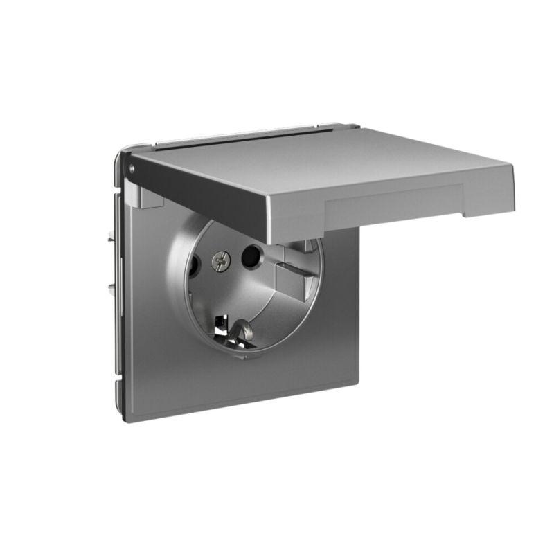 GAL000946S | Розетка ArtGallery 16А IP20 с заземл. со шторками с крышкой быстрозажим. клем. механизм сталь SE