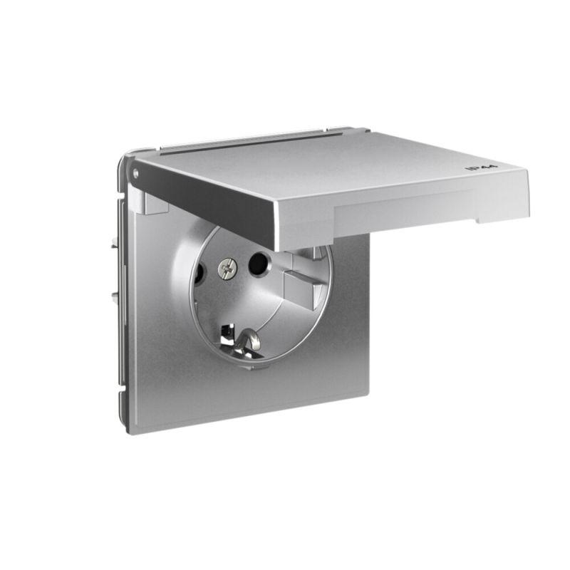 GAL440346S | Розетка ArtGallery 16А IP44 с заземл. со шторками с крышкой быстрозажим. клем. механизм алюм. SE