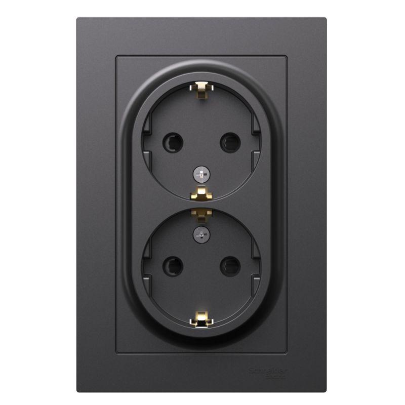 ATN001426 | Розетка двойная AtlasDesign с заземл. со шторками 16А в сборе базальт SE