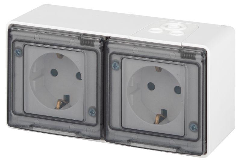Б0063262 | Розетка Эксперт 11-2504-01 2х2P+E гориз. IP55 шторки 16А-250В ОУ бел. Эра