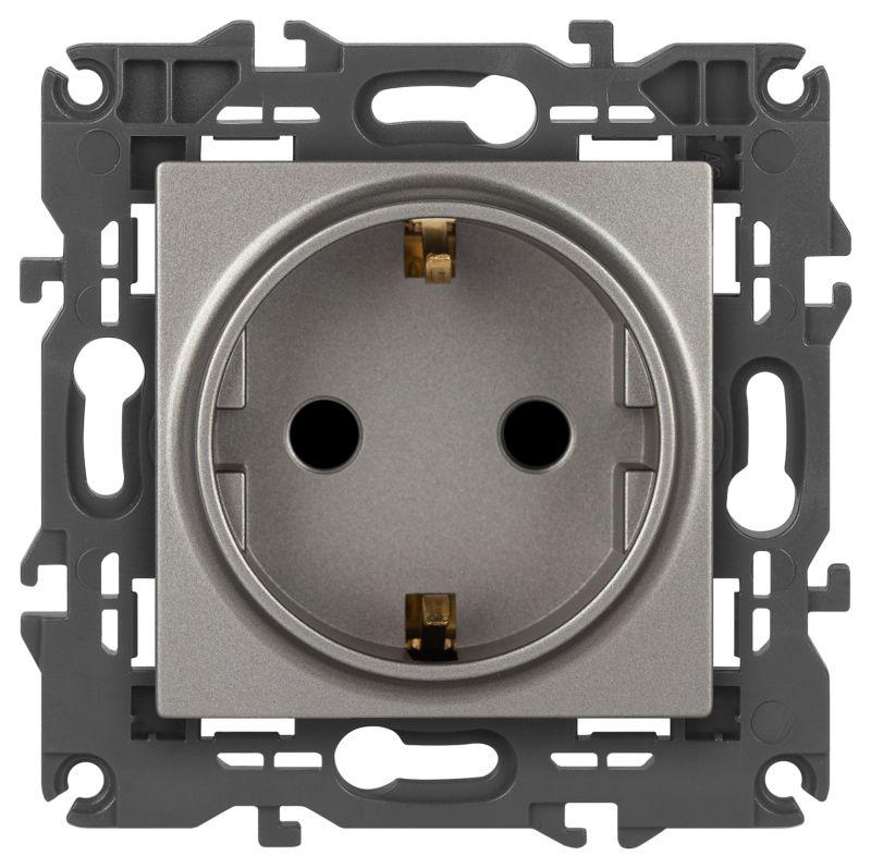 Б0065806 | Розетка ЭРА Elegance 14-2102-16 2P+E Schuko со шторками 16А-250В титан Эра