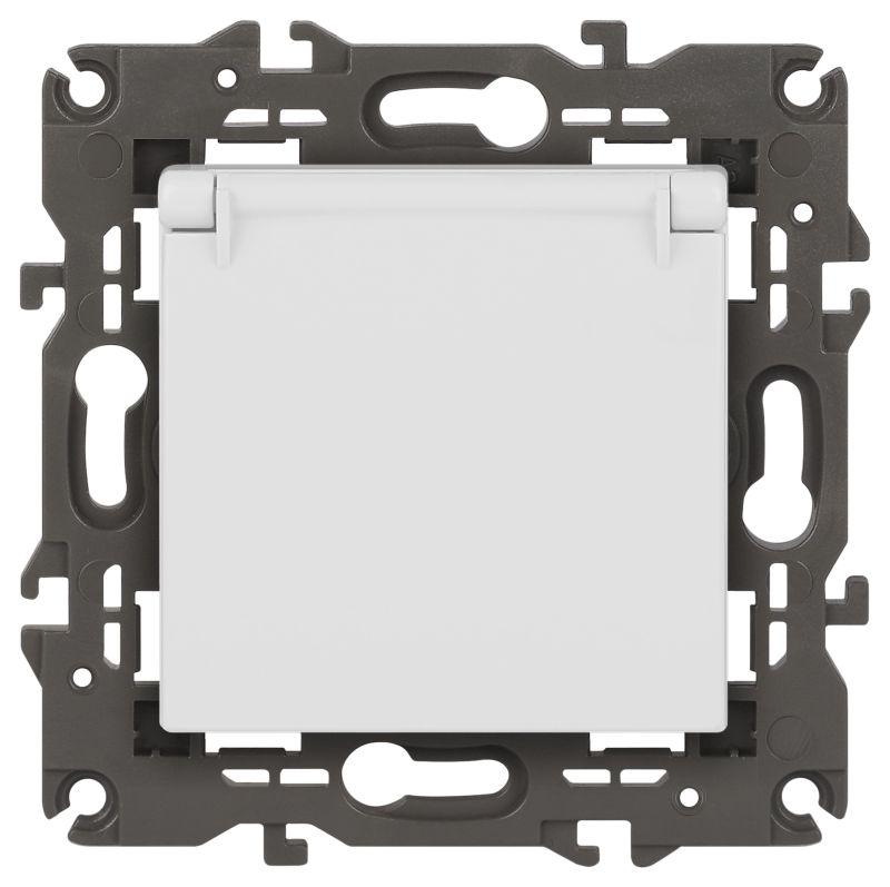Б0065808 | Розетка ЭРА Elegance 14-2103-01М 2P+E Schuko со шторками с крышкой 16А-250В матов. бел. Эра