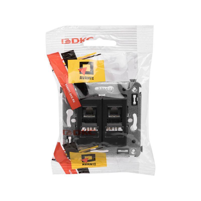 4412464 | Розетка компьютерная 2-м СП Avanti "Черный матовый" RJ45 кат.5E DKC