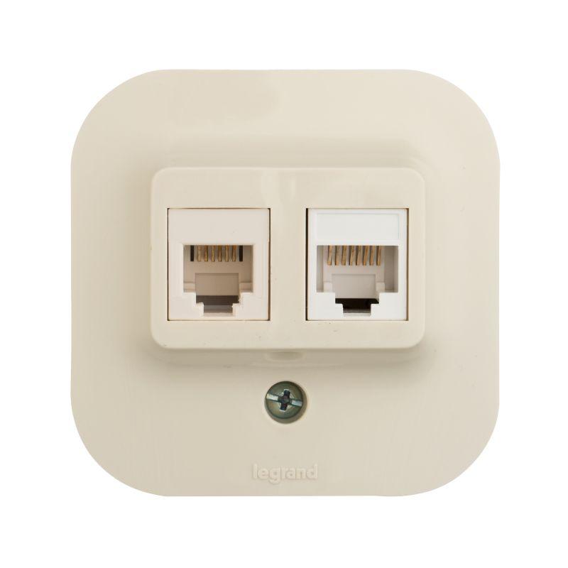 782251 | Розетка компьютерная + телефонная 2-м ОП 2мод. Quteo RJ45 + RJ11 кат.5E UTP IP20 сл. кость Leg