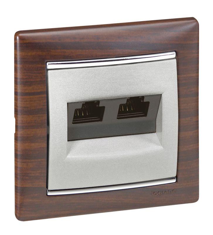 770239 | Розетка компьютерная 2-м СП Valena RJ45 кат.5E UTP на винтах механизм алюм. Leg