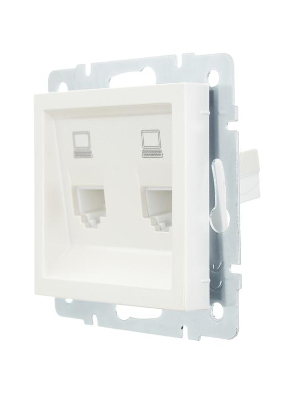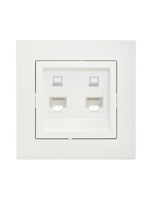 742-3088-141 | Розетка компьютерная 2-м СП Vesna механизм жемчуж./бел. перламутр LEZARD