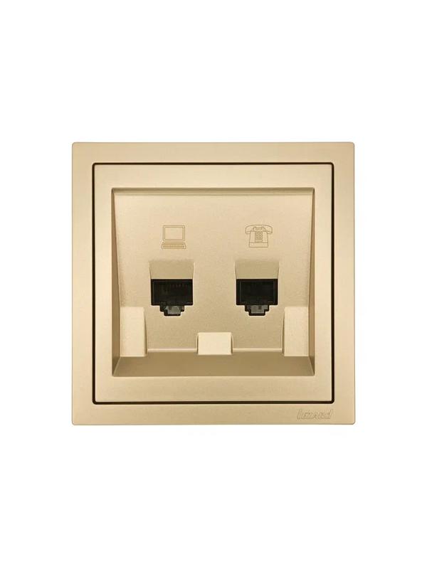 704-3688-143 | Розетка компьютер+телефон СП ZIMA IP20 зол. LEZARD