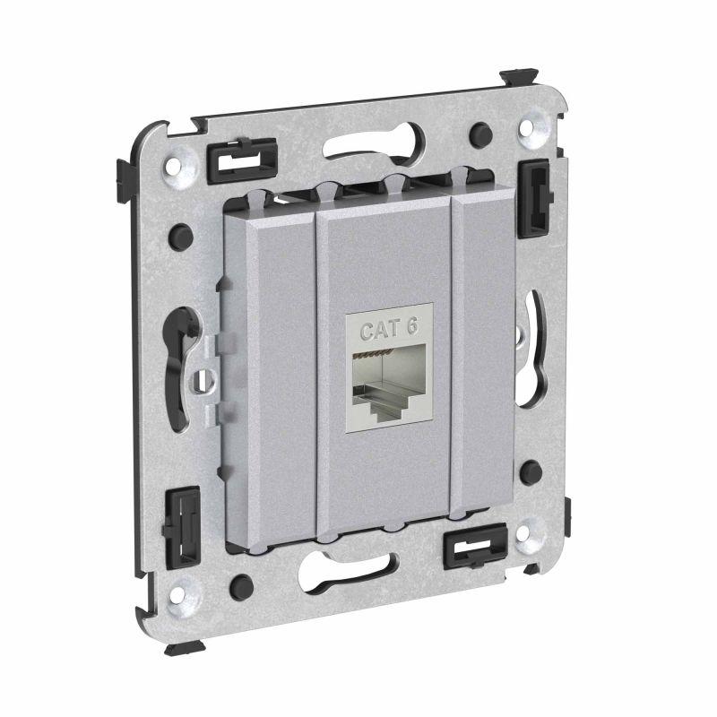 4404793 | Розетка компьютерная 1-м СП Avanti "Закаленная сталь" RJ45 кат.6 без шторок экранир. механизм DKC