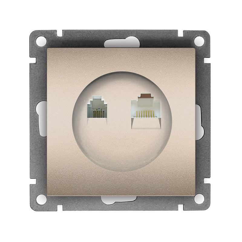 A0052-Br | Розетка компьютерная + телефонная 2-м СП Афина механизм шампань Universal