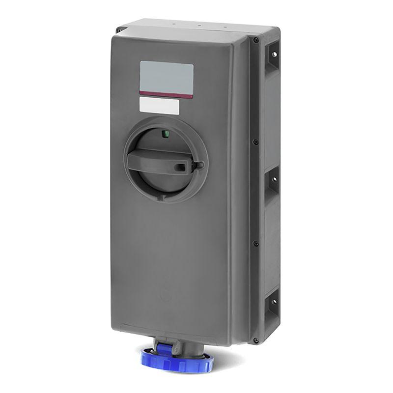 Розетка настенная 125А 250В 2P+E IP67 с мех. блокировкой авт. выключателем реле дифференц. тока и боковым расположением разъема DKC DIS50312583RM
