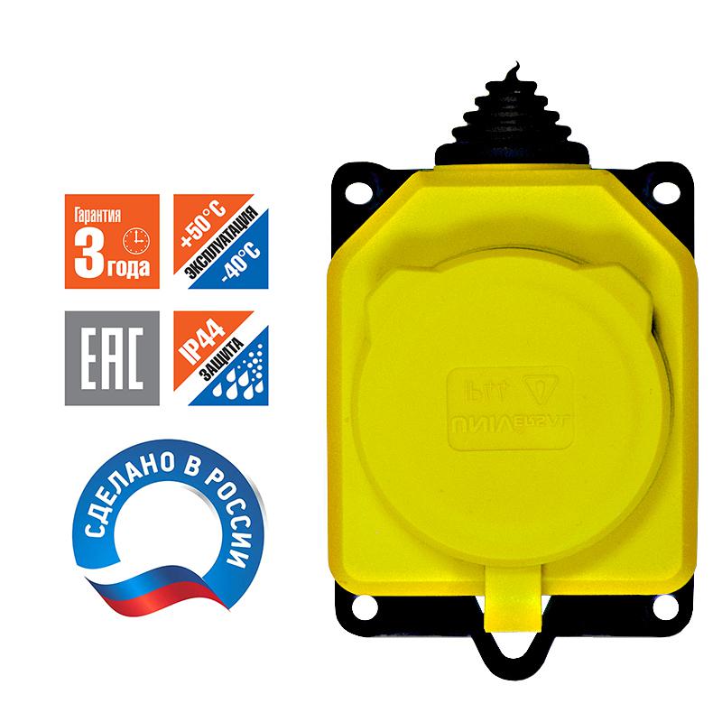 3085 | Розетка настенная 1ф с заглушкой компакт каучук желт. Universal