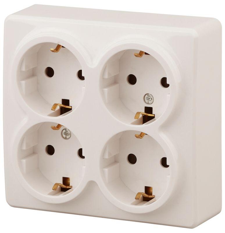 Б0020710 | Розетка 4-м ОП Эра Эксперт 11-2211-02 16А IP20 16AX 250В 4х2P+E Schuko защ. шторки сл. кость Эра