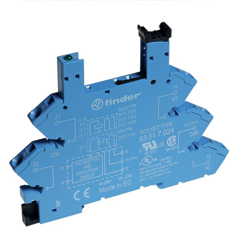 93517024 | Розетка с безвинт. клеммами (пружинный зажим) для реле 34 серии 24В DC в комплекте пластик. клипса опции: LED FINDER