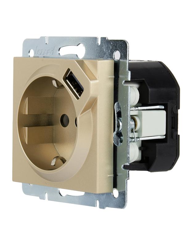 742-3688-181 | Розетка с заземл. + USB разъем VESNA зол. LEZARD