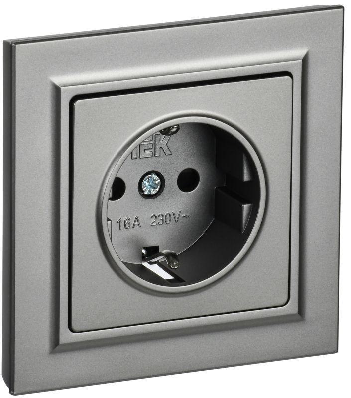 BR-R14-16-K46-F | Розетка СП BRITE РСР14-1-0-БрС 16А в сборе с заземл. защ. шторки сталь IEK