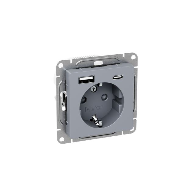 UP1-SOA-111-USBA+USBC | Розетка СП Эпика 16А с 2 USB-A+С с заземл. защ. шторки механизм алюм. EKF