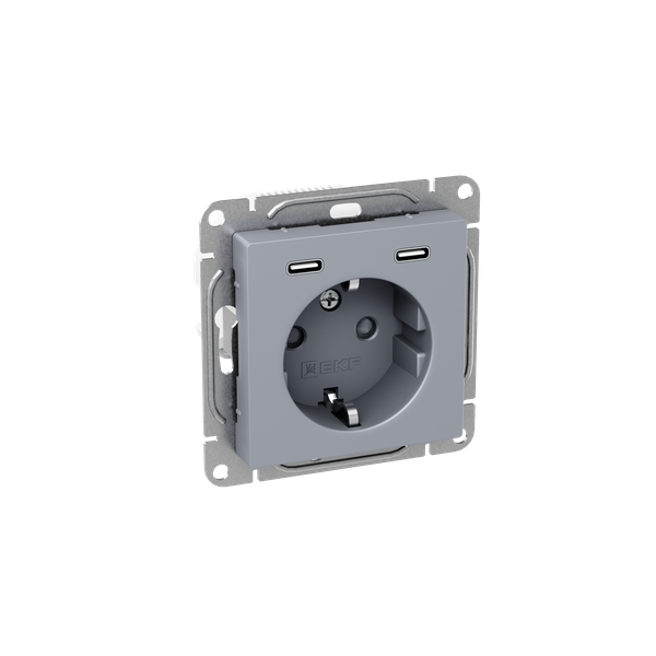 Розетка СП Эпика 16А с 2 USB-C с заземл. защ. шторки механизм алюм. EKF UP1-SOA-111-2USBC