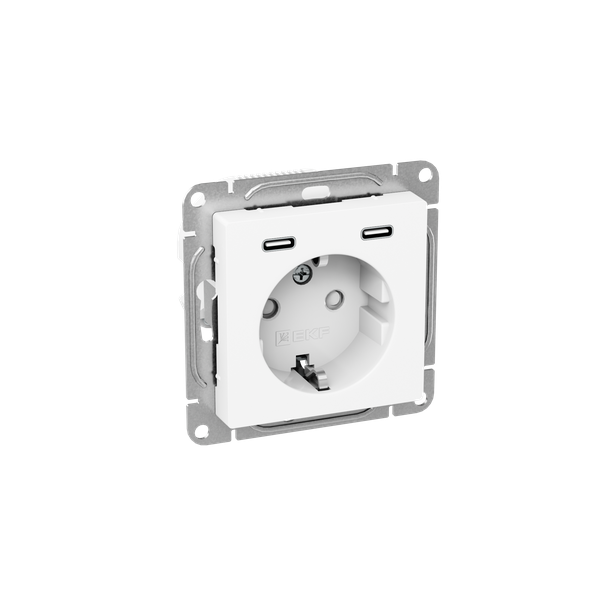 Розетка СП Эпика 16А с 2 USB-C с заземл. защ. шторки механизм бел. EKF UP1-SOW-111-2USBC