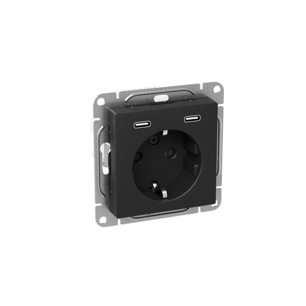 Розетка СП Эпика 16А с 2 USB-C с заземл. защ. шторки механизм черн. EKF UP1-SOB-111-2USBC