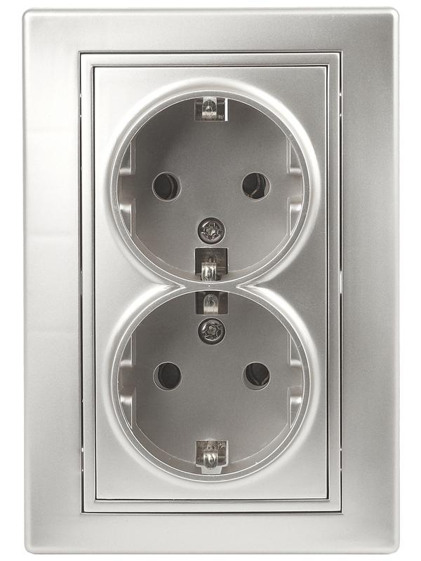 Товар Розетка СП Plano 2х2P+E Schuko 1-205-03 16А-250В IP20 алюм. Intro Б0030070 доступен с доставкой по г. Санкт-Петербург, Ленинградской области и территории РФ, или самовывозом.