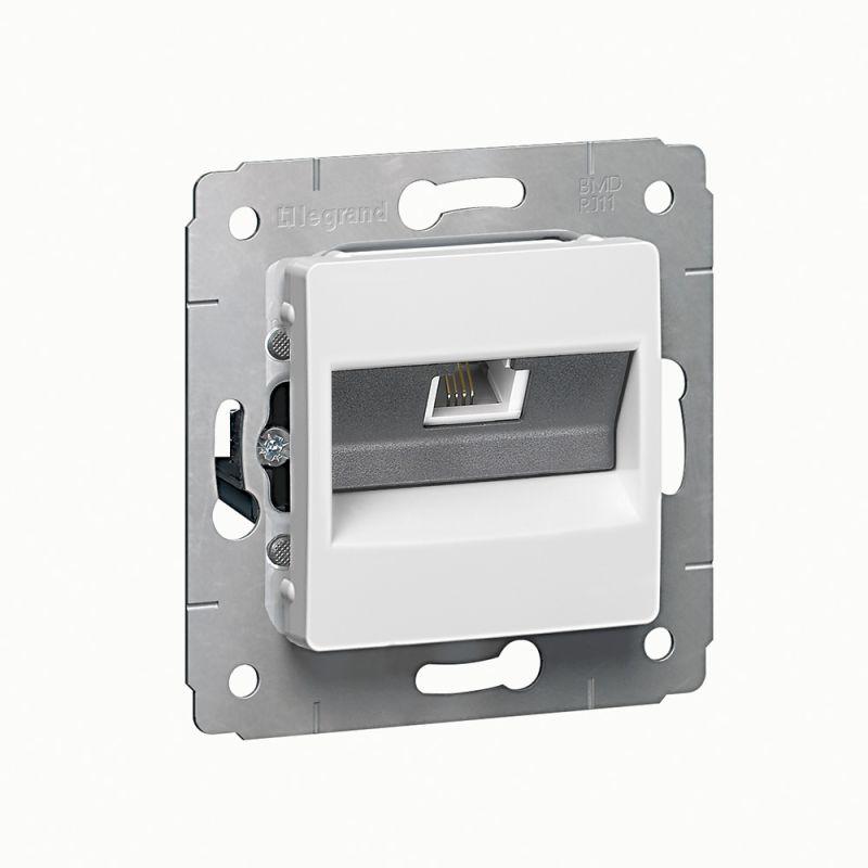 Розетка телефонная 1-м СП Cariva RJ11 4 контакт. механизм бел. Leg 773638