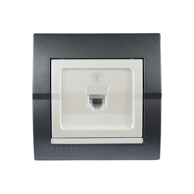 Розетка телефонная 1-м СП Deriy RJ11 16А IP20 темн. сер./жемчуж. LEZARD 702-2930-137