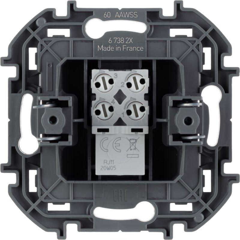 - Присоединение телефонного кабеля к розетке не требует специального инструмента. Надежность контактов обеспечивается техникой быстрого соединения: поворотом самозачищающих клемм на 1/4 оборота.
