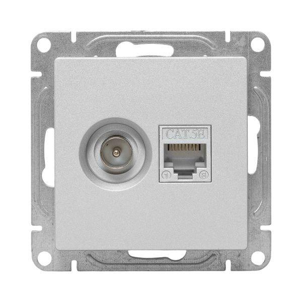 Розетка телевизионная + компьютерная СП Эпика TV + RJ45 кат.5 механизм алюм. EKF UP1-SOA-TV+RJ