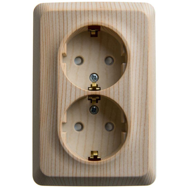 PA16-108D | Розетка угловая 2-м ОП Этюд 16А IP20 250В с заземл. защ. шторки сосна SE