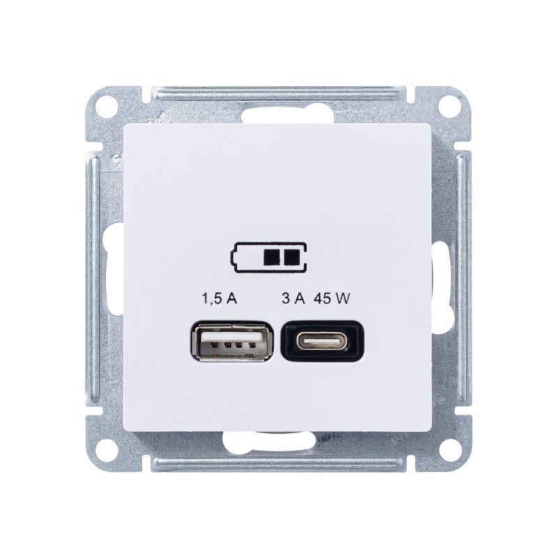 Розетка USB AtlasDesign тип A+C 45Вт высокоскор. ЗУ QC PD механизм лотос SE ATN001329