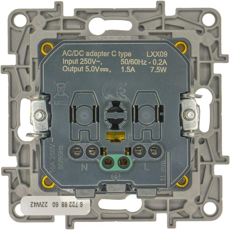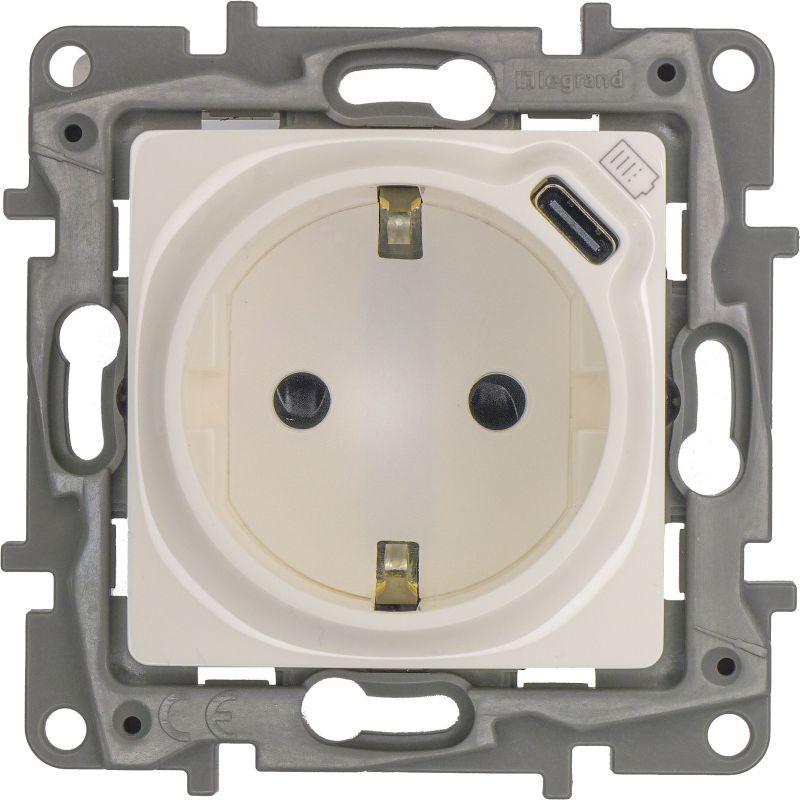 672288 | Розетка USB C Etika 16А 250В 1500мА 7.5Вт с заземл. защ. шторки безвинт. зажимы бел. IEK