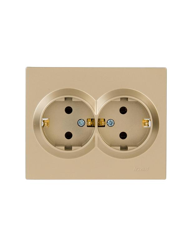 742-3600-127B | Розетка VESNA двойная с заземл. ПБТ зол. LEZARD