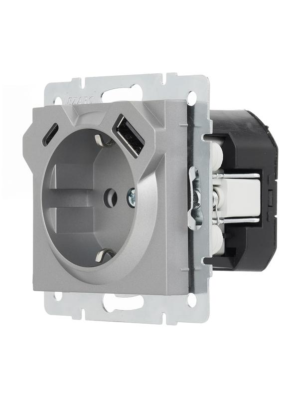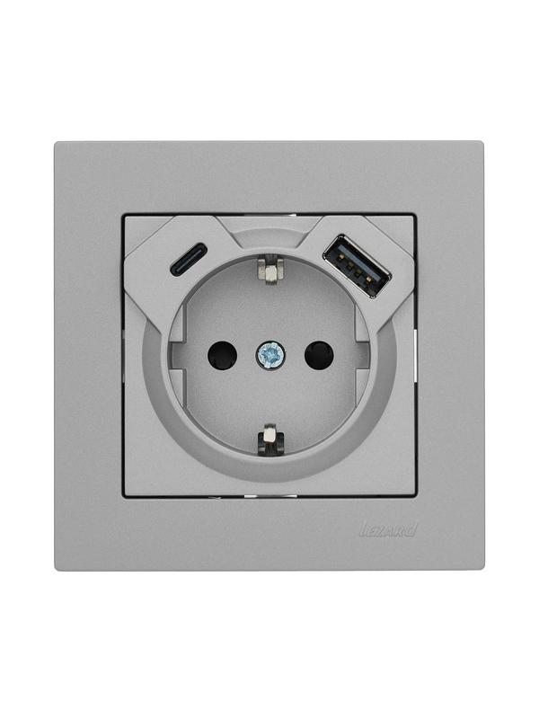 Розетка Vesna с заземл. TC+USB разъем платина LEZARD 742-3588-181TC