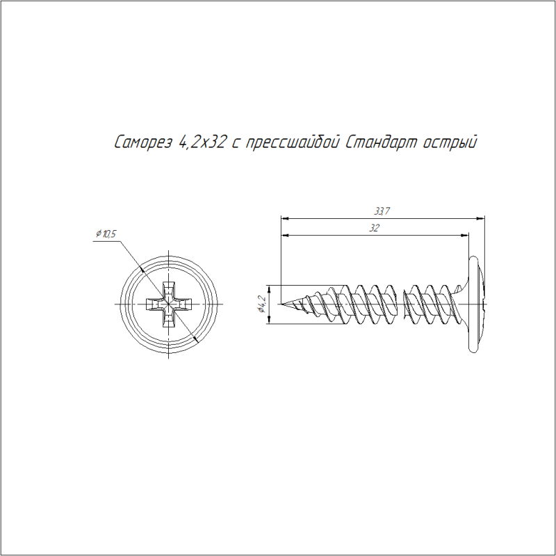 PR08.3649 | Саморез 4.2х32 с прессшайбой острый цинк (уп.500шт) Промрукав