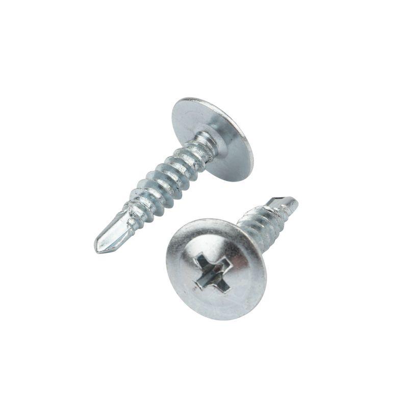 Саморезы изготовлены из стали и покрыты белым цинком, что делает их устойчивыми к коррозии и механическим повреждениям. Полусферическая головка с прессшайбой имеет большую плоскую поверхность, которая равномерно распределяет нагрузку на материал и надежно удерживает тонкие металлические элементы. Наконечник-сверло легко проходит тонкий металл толщиной до 2 мм без предварительного сверления.