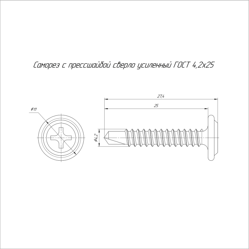 Саморез с прессшайбой сверло усиленный 4.2х25 (уп.250шт) Промрукав PR17.00340