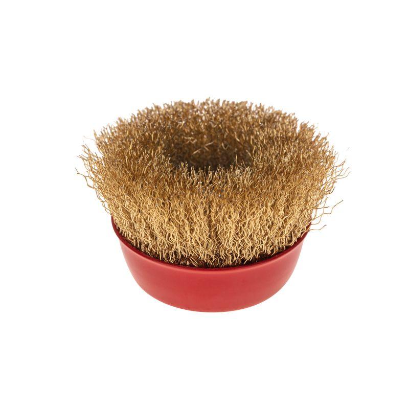 Витая щетина из латунированной проволоки оптимально подходит для аккуратной обработки и шлифовки, позволяет удалить тонкий слой материала, а также придать поверхности глянцевый блеск.