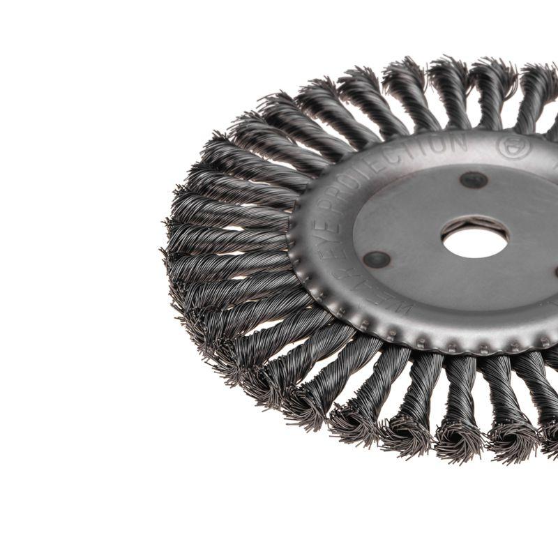 Прочная закаленная проволока собрана в тугие пучки с расходящимися краями. Такой тип проволоки характеризуется жесткостью, поэтому предназначен для удаления особо сложных загрязнений. Подходит для грубой и быстрой зачистки.