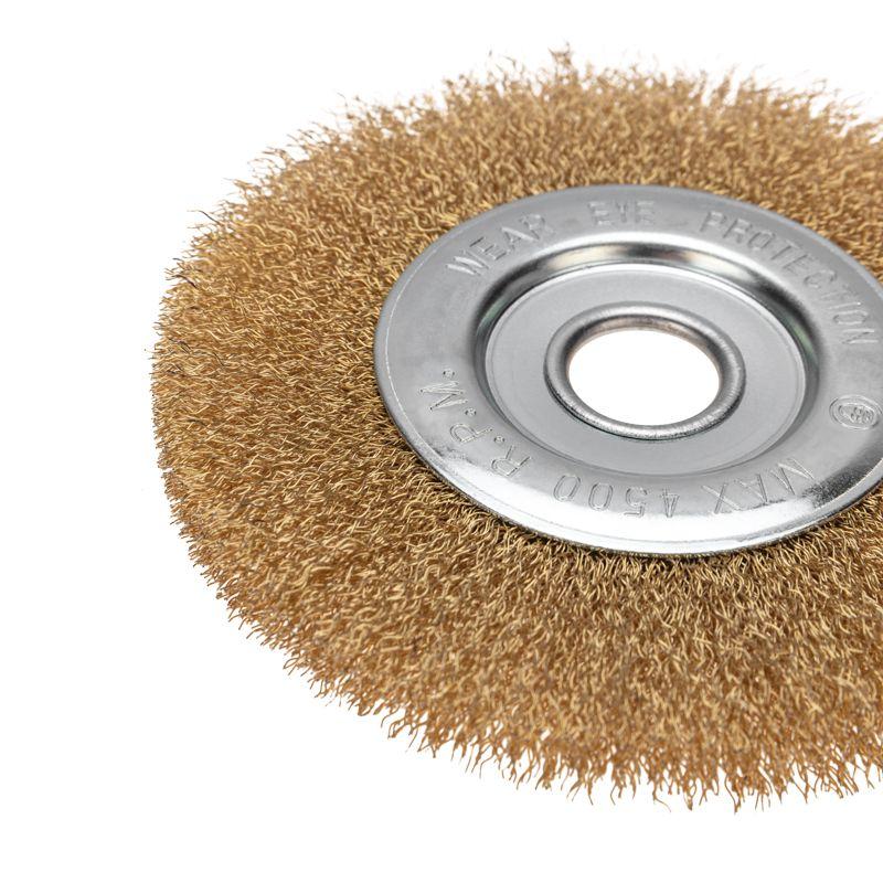 Витая щетина из латунированной проволоки оптимально подходит для аккуратной обработки и шлифовки, позволяет удалить тонкий слой материала, а также придать поверхности глянцевый блеск.