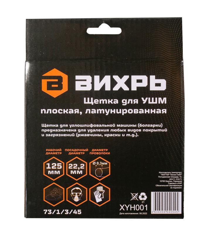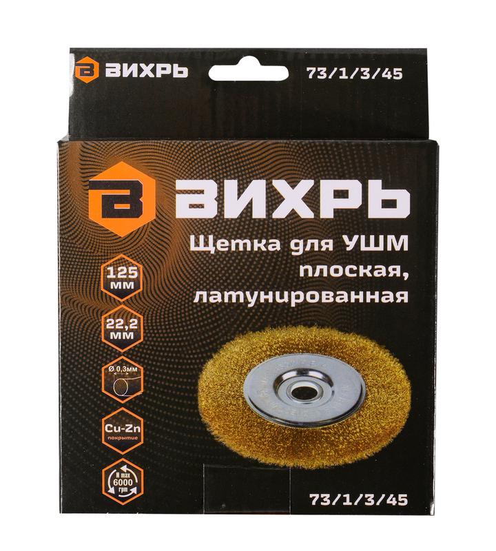 73/1/3/45 | Щетка для УШМ плоская латунированная 125мм Вихрь