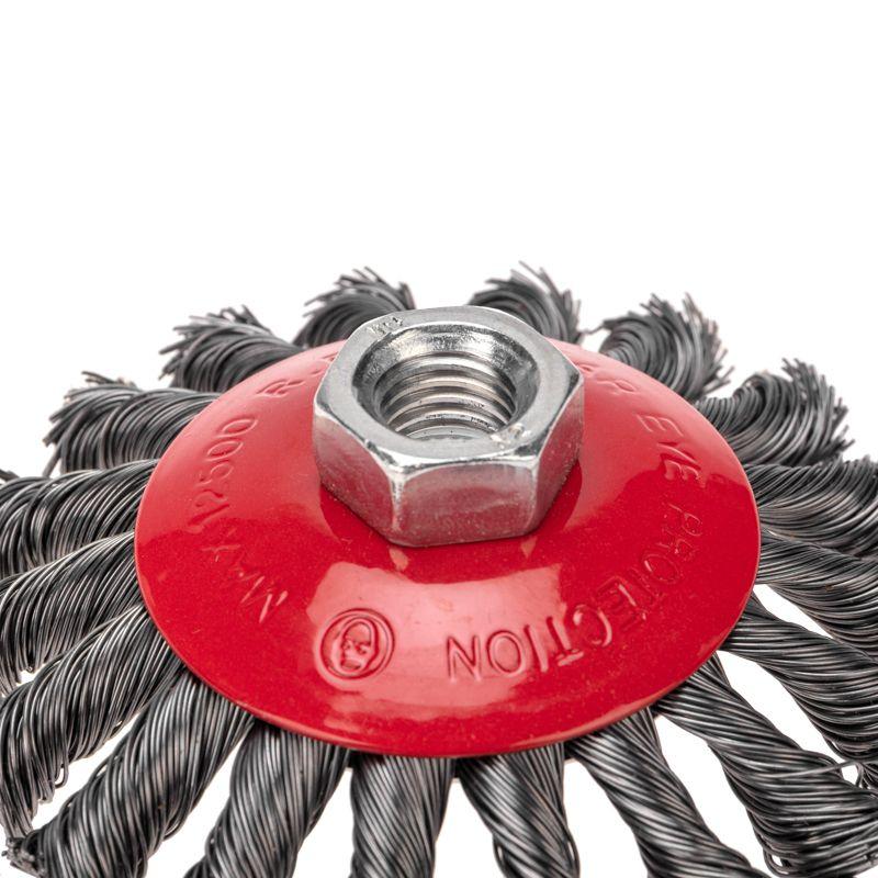 Щетка коническая для УШМ крученая стальная проволока 100мм М14 Kranz KR-91-1201